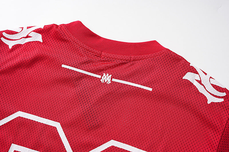 AMIRI'S JERSEY SKATER TEE, CONCEPTUALIZED IN THIS SEASON'S 2024 CHAMPIONSHIP CAPSULE COLLECTION. DESIGNED IN 50% COTTON 50% Polyester AND ADORNED WITH AMIRI'S SIGNATURE "22" PRINT. PAIR WITH HOUSE DENIM OFFERINGS FOR A COMPLETE LOOK.