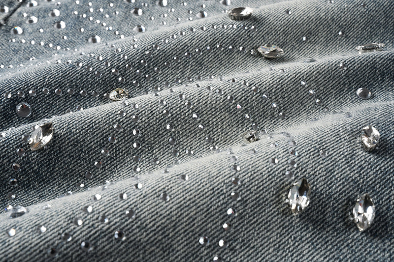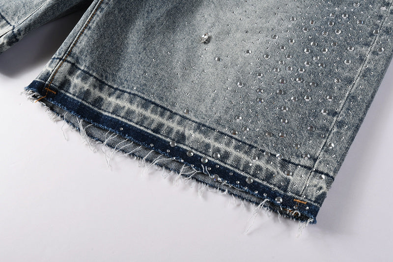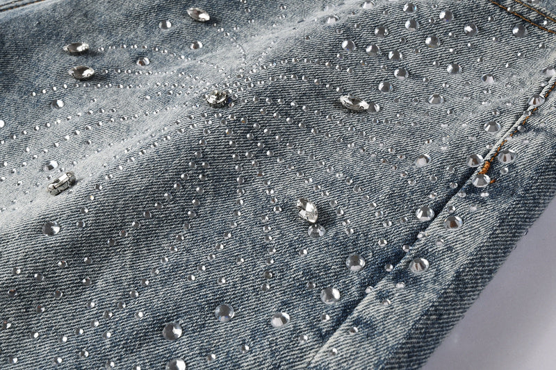 Purple Brand Crystal Diamond Denim Shorts #5102